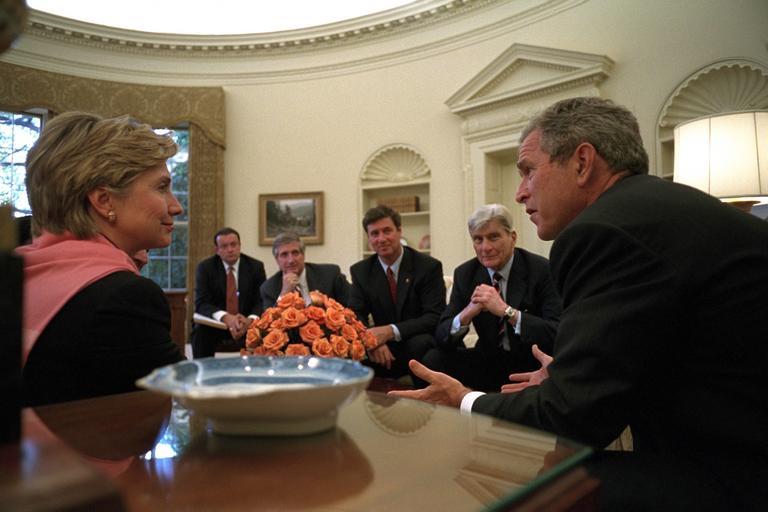 Keywords: washington d.c. dc u.s. national archives usnationalarchives president george w. bush presidentgeorgewbush 9/11 911 nara:arcid=5997283 george w. bush presidential library georgewbushpresidentiallibrary george w. bush georgewbush officials oval office ovaloffice white house whitehouse new york senator newyorksenator hillary rodham clinton hillaryrodhamclinton ziad ojakli ziadojakli andy card andycard george allan georgeallan john warner johnwarner senator 2001 indoor Original Caption: President George W. Bush meets in the Oval Office with, from left: New York Senator Hillary Rodham Clinton; Ziad Ojakli, Deputy Assistant for Legislative Affairs; Andy Card, Chief of Staff; Senator George Allan; and Senator John Warner. U.S. National Archives’ Local Identifier:P7176-33 Created By: President (2001-2009 : Bush). Office of Management and Administration. Office of White House Management. Photography Office. (01/20/2001 - 01/20/2009) From: Photographs Related to the George W. Bush Administration, compiled 01/20/2001 - 01/20/2009 Production Dates: 09/13/2001 Persistent URL: arcweb.archives.gov/arc/action/ExternalIdSearch?id=5997283 Repository: George W. Bush Library (Lewisville, TX) Access Restrictions: Unrestricted Use Restrictions: Unrestricted Original Caption: President George W. Bush meets in the Oval Office with, from left: New York Senator Hillary Rodham Clinton; Ziad Ojakli, Deputy Assistant for Legislative Affairs; Andy Card, Chief of Staff; Senator George Allan; and Senator John Warner. U.S. National Archives’ Local Identifier:P7176-33 Created By: President (2001-2009 : Bush). Office of Management and Administration. Office of White House Management. Photography Office. (01/20/2001 - 01/20/2009) From: Photographs Related to the George W. Bush Administration, compiled 01/20/2001 - 01/20/2009 Production Dates: 09/13/2001 Persistent URL: arcweb.archives.gov/arc/action/ExternalIdSearch?id=5997283 Repository: George W. Bush Library (Lewisville, TX) Access Restrictions: Unrestricted Use Restrictions: Unrestricted |