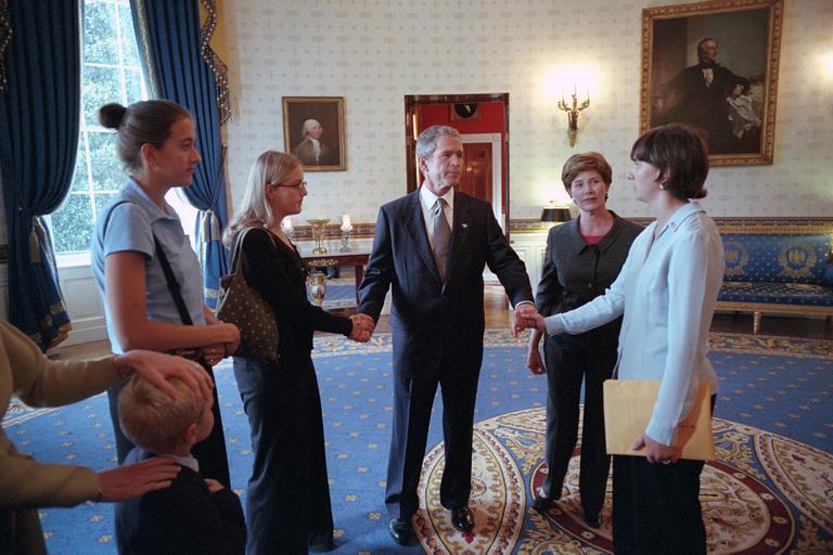 | Keywords: washington d.c. dc u.s. national archives usnationalarchives 9/11 911 president george w. bush presidentgeorgewbush nara:arcid=5997348 indoor Original Caption: President George W. Bush holds hands with family members of victims of United Flight 93 in the Blue Room of the White House. U.S. National Archives’ Local Identifier: P7728-24 Created By: President (2001-2009 : Bush). Office of Management and Administration. Office of White House Management. Photography Office. (01/20/2001 - 01/20/2009) From: Photographs Related to the George W. Bush Administration, compiled 01/20/2001 - 01/20/2009 Production Dates: 09/24/2001 Persistent URL: arcweb.archives.gov/arc/action/ExternalIdSearch?id=5997348 Repository: George W. Bush Library (Lewisville, TX) Access Restrictions: Unrestricted Use Restrictions: Unrestricted Original Caption: President George W. Bush holds hands with family members of victims of United Flight 93 in the Blue Room of the White House. U.S. National Archives’ Local Identifier: P7728-24 Created By: President (2001-2009 : Bush). Office of Management and Administration. Office of White House Management. Photography Office. (01/20/2001 - 01/20/2009) From: Photographs Related to the George W. Bush Administration, compiled 01/20/2001 - 01/20/2009 Production Dates: 09/24/2001 Persistent URL: arcweb.archives.gov/arc/action/ExternalIdSearch?id=5997348 Repository: George W. Bush Library (Lewisville, TX) Access Restrictions: Unrestricted Use Restrictions: Unrestricted |