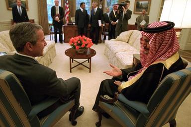 | Keywords: washington d.c. dc u.s. national archives usnationalarchives 9/11 911 president george w. bush presidentgeorgewbush nara:arcid=5997333 george w. bush georgewbush white house whitehouse oval office ovaloffice saudi foreign minister saudiforeignminister al-fail alfail 2001 george w. bush presidential library georgewbushpresidentiallibrary indoor Original Caption: President George W. Bush meets with Foreign Minister Saudi Al-Fail of Saudi Arabia in the Oval Office. U.S. National Archives’ Local Identifier: P7593-16 Created By: President (2001-2009 : Bush). Office of Management and Administration. Office of White House Management. Photography Office. (01/20/2001 - 01/20/2009) From: Photographs Related to the George W. Bush Administration, compiled 01/20/2001 - 01/20/2009 Production Dates: 09/20/2001 Persistent URL: arcweb.archives.gov/arc/action/ExternalIdSearch?id=5997333 Repository: George W. Bush Library (Lewisville, TX) Access Restrictions: Unrestricted Use Restrictions: Unrestricted Original Caption: President George W. Bush meets with Foreign Minister Saudi Al-Fail of Saudi Arabia in the Oval Office. U.S. National Archives’ Local Identifier: P7593-16 Created By: President (2001-2009 : Bush). Office of Management and Administration. Office of White House Management. Photography Office. (01/20/2001 - 01/20/2009) From: Photographs Related to the George W. Bush Administration, compiled 01/20/2001 - 01/20/2009 Production Dates: 09/20/2001 Persistent URL: arcweb.archives.gov/arc/action/ExternalIdSearch?id=5997333 Repository: George W. Bush Library (Lewisville, TX) Access Restrictions: Unrestricted Use Restrictions: Unrestricted |