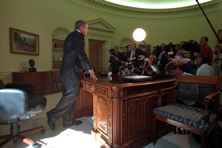 Keywords: washington d.c. dc u.s. national archives usnationalarchives president george w. bush presidentgeorgewbush 9/11 911 nara:arcid=5997279 george w. bush presidential library georgewbushpresidentiallibrary george w. bush georgewbush addressing media oval office ovaloffice 2001 white house whitehouse indoor Original Caption: President George W. Bush addresses reporters in the Oval Office after his telephone conversation with New York Governor George Pataki and New York City Mayor Rudolph Giuliani. U.S. National Archives’ Local Identifier:P7279-34 Created By: President (2001-2009 : Bush). Office of Management and Administration. Office of White House Management. Photography Office. (01/20/2001 - 01/20/2009) From: Photographs Related to the George W. Bush Administration, compiled 01/20/2001 - 01/20/2009 Production Dates: 09/13/2001 Persistent URL: arcweb.archives.gov/arc/action/ExternalIdSearch?id=5997279 Repository: George W. Bush Library (Lewisville, TX) Access Restrictions: Unrestricted Use Restrictions: Unrestricted Original Caption: President George W. Bush addresses reporters in the Oval Office after his telephone conversation with New York Governor George Pataki and New York City Mayor Rudolph Giuliani. U.S. National Archives’ Local Identifier:P7279-34 Created By: President (2001-2009 : Bush). Office of Management and Administration. Office of White House Management. Photography Office. (01/20/2001 - 01/20/2009) From: Photographs Related to the George W. Bush Administration, compiled 01/20/2001 - 01/20/2009 Production Dates: 09/13/2001 Persistent URL: arcweb.archives.gov/arc/action/ExternalIdSearch?id=5997279 Repository: George W. Bush Library (Lewisville, TX) Access Restrictions: Unrestricted Use Restrictions: Unrestricted |