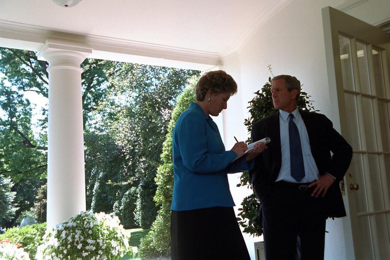 | Keywords: washington d.c. dc u.s. national archives usnationalarchives president george w. bush presidentgeorgewbush 9/11 911 nara:arcid=5997270 george w. bush presidential library georgewbushpresidentiallibrary george w. bush georgewbush karen hughes karenhughes 2001 colonnade white house whitehouse Original Caption: President George W. Bush confers with Karen Hughes on the White House Colonnade. U.S. National Archives’ Local Identifier: P7208-10A Created By: President (2001-2009 : Bush). Office of Management and Administration. Office of White House Management. Photography Office. (01/20/2001 - 01/20/2009) From:: Photographs Related to the George W. Bush Administration, compiled 01/20/2001 - 01/20/2009 Production Date: 09/12/2001 Persistent URL: arcweb.archives.gov/arc/action/ExternalIdSearch?id=5997270 Repository: George W. Bush Library (Lewisville, TX) Access Restrictions: Unrestricted Use Restrictions: Unrestricted Original Caption: President George W. Bush confers with Karen Hughes on the White House Colonnade. U.S. National Archives’ Local Identifier: P7208-10A Created By: President (2001-2009 : Bush). Office of Management and Administration. Office of White House Management. Photography Office. (01/20/2001 - 01/20/2009) From:: Photographs Related to the George W. Bush Administration, compiled 01/20/2001 - 01/20/2009 Production Date: 09/12/2001 Persistent URL: arcweb.archives.gov/arc/action/ExternalIdSearch?id=5997270 Repository: George W. Bush Library (Lewisville, TX) Access Restrictions: Unrestricted Use Restrictions: Unrestricted |