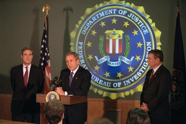 Keywords: washington d.c. dc u.s. national archives usnationalarchives 9/11 911 president george w. bush presidentgeorgewbush nara:arcid=5997351 federal bureau of investigation federalbureauofinvestigation groupshot people indoor Original Caption: President George W. Bush addresses the media during a tour of Federal Bureau of Investigation (FBI) Headquarters with Director Robert Mueller, left, and U.S. Attorney General John Ashcroft. U.S. National Archives’ Local Identifier: P7784-32 Created By: President (2001-2009 : Bush). Office of Management and Administration. Office of White House Management. Photography Office. (01/20/2001 - 01/20/2009) From: Photographs Related to the George W. Bush Administration, compiled 01/20/2001 - 01/20/2009 Production Dates: 09/25/2001 Persistent URL: arcweb.archives.gov/arc/action/ExternalIdSearch?id=5997351 Repository: George W. Bush Library (Lewisville, TX) Access Restrictions: Unrestricted Use Restrictions: Unrestricted Original Caption: President George W. Bush addresses the media during a tour of Federal Bureau of Investigation (FBI) Headquarters with Director Robert Mueller, left, and U.S. Attorney General John Ashcroft. U.S. National Archives’ Local Identifier: P7784-32 Created By: President (2001-2009 : Bush). Office of Management and Administration. Office of White House Management. Photography Office. (01/20/2001 - 01/20/2009) From: Photographs Related to the George W. Bush Administration, compiled 01/20/2001 - 01/20/2009 Production Dates: 09/25/2001 Persistent URL: arcweb.archives.gov/arc/action/ExternalIdSearch?id=5997351 Repository: George W. Bush Library (Lewisville, TX) Access Restrictions: Unrestricted Use Restrictions: Unrestricted |
