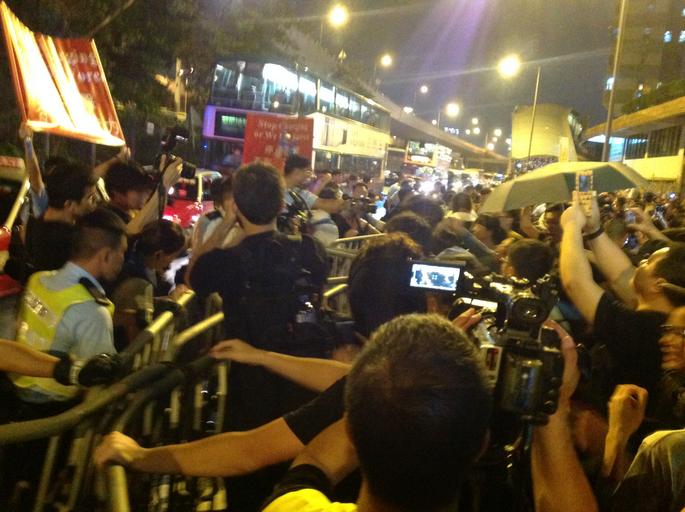 Keywords: 香港各界發起反人大釋法大遊行和集會 97.jpg zh-tw 中 人大常委 11 7日將就香港 年新政兩位議員宣誓風波,對基 法 宣誓 例宣布釋法內容之際,香港民間人權陣線星 天發起各界 反對釋法大遊行 和集 ,抗議人大 香港高等法院審理 宣誓風波司法覆核案 間,主動對基 法第104 釋法,破壞香港獨立的司法制度 香港民陣發起反釋法大遊行後,數以千計的示威 繼續遊行到西環的中聯辦抗議人大釋法 8點半左右,示威 手舉雨傘再次沖擊警方防線,警方則狂噴辣椒噴劑還擊 警方調派大批警員增援,並將配備防暴頭盔的警員派至 線與示威 對峙 警方不斷呼籲示威 持冷 ,不要 擊警方防線,要求示威 盡快離開 9點前, 中聯辦外與警察對峙的示威 突然撤離,輕 西 警署外的徳輔道西和西邊街道口,現場雙向交 中斷, 場自2014年雨傘運動後的佔領行動 醞 中,現場至少 幾千之 十多分鐘後,警方開始廣 播,要求佔路人士離開 示威 9點過後佔據了中聯辦外 段德輔道,並 中聯辦後 外與警方防線展開推撞,警方用辣椒噴 還擊將示威 防線推後 示威 不斷呼喊反對釋法 警方 中聯辦西邊的 光街路口佈署第二道防線,並 警員從路旁的西 警署裡向警察傳遞防暴盾牌 步部署防線 目前還不清楚警方何時清場 2016-11-06 19 55 00 http //www voachinese com/a/hk-protest-20161106/3583208 html 海彥 other versions Custom license marker 2016 11 06 PD-USGov-VOA Occupy Sai Wan |