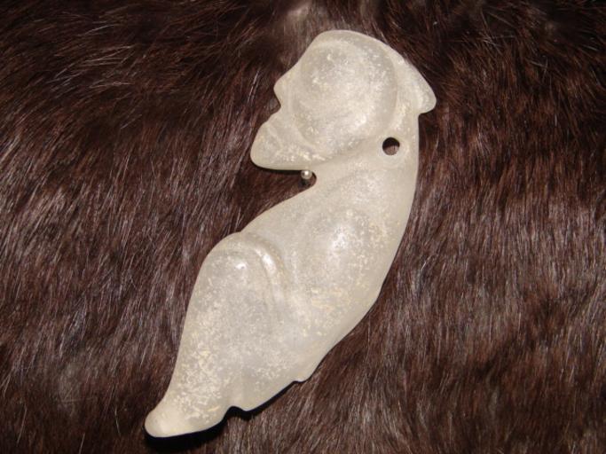 Keywords: 人首獸形 紅山琉璃 玉而富 986.jpg zh-tw 器別:生 紋飾:立體 泌色:無 代:紅山文化 礦物學名:琉璃 二氧化硅﹞ 紅山文化-年代約3500-5000年 紅山文化-小件配飾品 數百種的 形 玉c形龍 猪龍 玉梟 玉鷹 具三孔器 異獸 玉蟬複合體 太陽神等 此器質化晶變 次晶增生 受人工拋光打磨 留原 咬風化的魚鱗 的 六角柱 晶體﹞ 生 盤玩,三 立體 肖生﹞ 形特別 曲線流暢 雕工傳神 創意佳 術品﹞ Own 玉 富 2008-12-03 Hongshan culture |