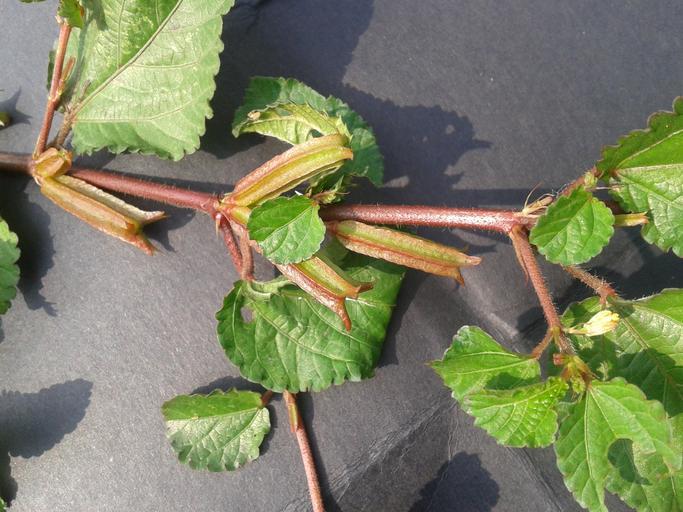 Keywords: தலக்கைப் பூண்டு9.jpg en Botanical name - Corchorus trilocularis Common names - Wild Jute ; Jew s mallow Tamil name Talakkaippoondu shrub having two hands on head Seeds are used to treat abdominal obstructions; The mucilage is used as a soothing substance; Fibre is utilized in making ropes; Tender leaves are used for sauce preparing; Flowers are also useful in cooking ; Plant is a useful fodder Photo - Different view of Corchorus trilocularis ; Look at the hairs on stems ta தலக்கைப் பூண்டு புளிச்சன் எனவும் இம் மூலிகை அறியப்படும் ; நல்ல கால்நடைத் த வனம்; செடியை ஊறவைத்துக் கூழாக்கி அதனை உடலில் தடவ வலி குறையும்; காய்ச்சலுக்கு இதன் விதைகள் மருந்தாகும்;இலை கல்ல ரல் நோய்க்கு மருந்தாகிறது; இலை பூ ஆகியன சமையலில் உணவாகப் பயன்படுத்தப்படுகிறது படத்தில் - தலக்கைப் பூண்டின் மற்றுமொரு தோற்றம் hi कड़वा पात Kadvapat kn Kaaduchunchali gida mr Kaaduchunch sa Chanchu te Bankitutturu ml Arenukam own Dr S Soundarapandian 2014-04-11 Own field work Shot in Chennai Tamilnadu India 4 5 kms off sea-shore ; Latitude-13°02'20 N ; Longitude- 80°13'43 E ; Elevation from sea level - 6 7 m Corchorus trilocularis Cc-zero |
