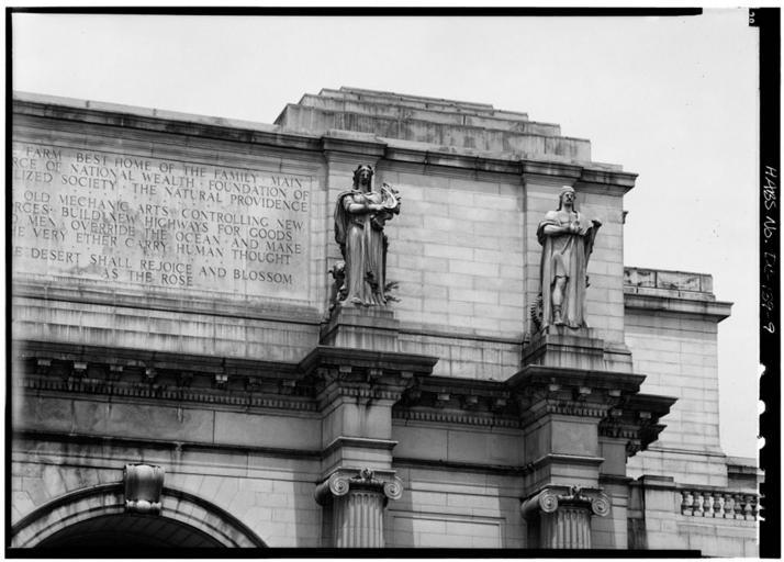 | Keywords: 9. DETAIL, EAST END OF MAIN ENTRANCE PAVILION, SHOWING STATUARY AND INSCRIPTION - Union Station030018pv.jpg en Union Station 50 Massachusetts Avenue Northeast Washington District of Columbia DC 9 DETAIL EAST END OF MAIN ENTRANCE PAVILION SHOWING STATUARY AND INSCRIPTION 5 x 7 in accession number Reproduction Number HABS DC WASH 536--9 Call Number HABS DC WASH 536--9 institution Library of Congress Prints and Photographs Division Washington D C 20540 USA http //hdl loc gov/loc pnp/pp print LOC-image hhh dc0254/photos 030018p Creator Jack Boucher Rights Advisory No known restrictions on images made by the U S Government; images copied from other sources may be restricted http //www loc gov/rr/print/res/114_habs html 38 895 -77 03667 DC WASH 536--9 Union Station Washington D C Uploaded with UploadWizard |