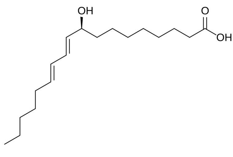 Keywords: 9-HODE.svg Chemical structure of 9-HODE; 9S-hydroxy-10 E 12 Z -octadecadienoic acid α-dimorphecolic acid Own 18 54 29 August 2015 UTC Ed Edgar181 Unsaturated fatty acids