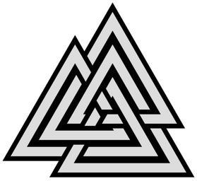 | Keywords: 9crossings-knot-symmetric-triangles-quasi-valknut.svg Decorative knot with nine crossings depicted with three-fold symmetry Topologically equivalent to File Knot-9crossings-symmetrical svg but this version is based on triangles rather than circles and so appears like a more complex version of a Valknut For an alternative more open version see File 9crossings-knot-symmetric-triangles-pseudo-valknut svg Self-made graphic converted from a version of the following vector PostScript source code <pre> 27 27 scale 1 setlinewidth/x 3 sqrt mul def 7 1 x moveto 12 6 x lineto 16 2 x lineto 2 2 x lineto 8 8 x lineto 13 3 x lineto 5 3 x lineto 12 10 x lineto 18 4 x lineto 8 4 x lineto 12 8 x lineto 19 1 x lineto closepath gsave 2 setlinewidth stroke grestore 7 setgray stroke showpage EOF</pre> 2010 AnonMoos thumb center Open variant 9 crossing number knots and links Outline knots and links Knot diagrams with 3-fold rotational symmetry Images with PostScript source code Valknut Knots and links on transparent background |