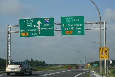 Keywords: A20 Ouest km143.jpg en A new Clearview left and an old FHWA right highway signs in Saint-Simon-de-Bagot Quebec Canada installed in June 2009 on Autoroute 20 westbound To Montreal at the exit 141 Notice the exit number and the route shields on the new sign who still use the FHWA typeface and the Granby destination over the Route 116 shield instead of being below the name Boulevard Laurier fr Un nouveau panneau de signalisation avec la fonte Clearview gauche et un ancien avec la fonte FHWA à droite à Saint-Simon-de-Bagot Québec Canada installé en Juin 2009 sur l'Autoroute 20 Ouest Vers Montréal à la sortie 141 Notez le numéro de sortie et les écussons de route sur le nouveau panneau qui utilisent encore la fonte FHWA et la destination Granby au dessus de l'écusson de la Route 116 au lieu de se trouver en dessous du nom Boulevard Laurier own SASgrafix 2009-08-01 45 680058 -72 826924 Road signs in Quebec Highway Code Road sign gantries in Canada Quebec Autoroute 20 Green road signs |