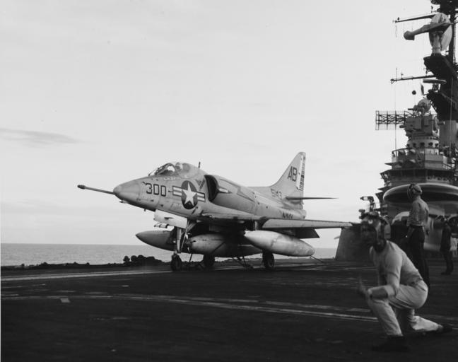 | Keywords: A-4C of VA-172 on catapult of USS Franklin D. Roosevelt (CVA-42) in August 1966.jpg A U S Navy Douglas A-4C Skyhawk BuNo 145143 from Attack Squadron 172 VA-172 Blue Bolts prepares to leave the flight deck of the aircraft carrier USS Franklin D Roosevelt CVA-42 10 August 1966 VA-172 was assigned to Attack Carrier Air Wing 1 CVW-1 aboard the Franklin D Roosevelt for a deployment to Vietnam from 21 June 1966 to 21 February 1967 <br> This aircraft was lost on 2 December 1966 when it was shot down by a North Vietnamese SA-2 missile during a night reconnaissance mission over the Red River delta south of Hanoi Vietnam The pilot Commander Bruce A Nystrom VA-172's commanding officer was killed Official U S Navy photo http //www history navy mil/our-collections/photography/numerical-list-of-images/nhhc-series/nh-series/USN-1118000/USN-1118347 html USN 1118347 from the U S Navy http //www history navy mil Naval History and Heritage Command 1966-08-10 U S Navy PD-USGov-Military-Navy A-4C Skyhawk Attack Squadron 172 United States Navy Aboard USS Franklin D Roosevelt CV-42 Vietnam War in 1966 United States Navy air group commander aircraft |