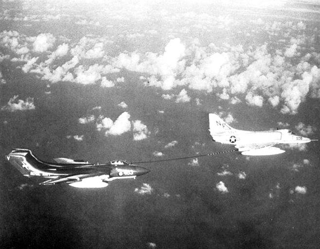 Keywords: A-4E Skyhawk of VA-55 refuels Sea Vixen FAW2 of 893 NAS in May 1964.jpg A U S Navy Douglas A-4E Skyhawk from Attack Squadron 55 VA-55 Warhorses refuels a Royal Navy De Havilland Sea Vixen FAW 2 from 893 Naval Air Squadron VA-55 was assigned to Attack Carrier Air Wing 5 CVW-5 aboard the aircraft carrier USS Ticonderoga CVA-14 for a deployment to the Western Pacific and Vietnam from 14 April to 15 December 1964 893 NAS was assigned to HMS Victorious R38 Both carriers took part in a SEATO exercise off the Philippines in May 1964 U S Navy photo http //www navysite de/cruisebooks/cv14-64/096 htm from the http //www navysite de/cruisebooks/cv14-64/index_004 htm USS Ticonderoga CVA-14 1964 cruise book available at http //navysite de/cruisebooks/index html Navysite de 1964-05 U S Navy PD-USGov-Military-Navy A-4E Skyhawk De Havilland Sea Vixen Attack Squadron 55 United States Navy 893 Naval Air Squadron Aerial refueling LIGTAS 1964 military exercise |