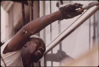 | Keywords: A BLACK MAN PAINTING A STORE FRONT ON SOUTH WABASH STREET ONE OF THE NEARLY 1.2 MILLION PEOPLE OF HIS RACE WHO MAKE... - NARA - 556154.jpg Scope and content General notes 556154 Local identifier 412-DA-13702 Environmental Protection Agency 12/02/1970 - NARA-Author White John H 1945- Photographer 4002141 <br /> Chicago Cook county Illinois United States North and Central America inhabited place 4201352 41 85 -87 65 <br /> Still Picture Records Section Special Media Archives Services Division NWCS-S National Archives at College Park 8601 Adelphi Road College Park MD 20740-6001 07/1973 Record group Record Group 412 Records of the Environmental Protection Agency 1944 - 2006 Record group ARC 708 DOCUMERICA The Environmental Protection Agency's Program to Photographically Document Subjects of Environmental Concern compiled 1972 - 1977 Series ARC 542493 File unit File unit ARC Variant control numbers Agency-Assigned Identifier 229/22/013702<br /> NAIL Control Number NWDNS-412-DA-13702 no Other versions <gallery> File A_BLACK_MAN_PAINTING_A_STORE_FRONT_ON_SOUTH_WABASH_STREET_ONE_OF_THE_NEARLY_1 2_MILLION_PEOPLE_OF_HIS_RACE_WHO_MAKE _-_NARA_-_556154 tif tif File A_BLACK_MAN_PAINTING_A_STORE_FRONT_ON_SOUTH_WABASH_STREET_ONE_OF_THE_NEARLY_1 2_MILLION_PEOPLE_OF_HIS_RACE_WHO_MAKE _-_NARA_-_556154 jpg jpg </gallery> NARA-cooperation PD-USGov John H White African American men Painters artisans People of Chicago |