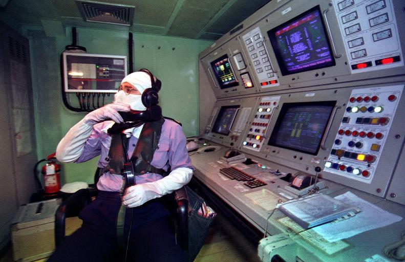 | Keywords: A bordo da Vasco da Gama 2.JPEG  A Portuguese Sailor listens as his exceutive officer Not shown directs a fire party from the Portuguese Frigate NRP VASCO DE GAMA'S F 330 machine control room during a capability enhancement training CET exercise The VASCO DE GAMA is operating with other NATO Navy ships off the coast of Portugal during exercise Strong Resolve '98 Crisis South on March 12th 1998 http //www defenseimagery mil/assetDetails action guid 7c4ff6b3b74fb4d7a1840ad88321555712943672 1998-03-12 PH1 Todd P Cichonowicz PD-USGov-Military-Navy Anti-flash gear NRP Vasco da Gama F330 Strong Resolve 1998 |