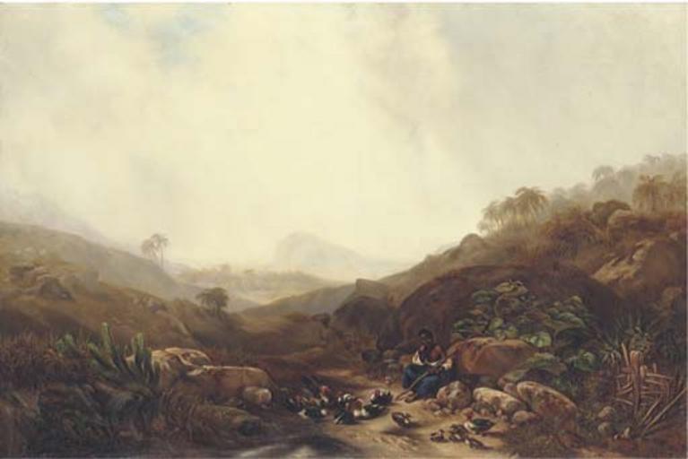 Keywords: A Brazilian slave girl minding ducks by a pond in the hills above Rio de Janeiro.jpg Artwork creator Eduard Hildebrandt Probably Hildebrandt's 'Brasilianisches Mohrenmädchen' 'Brazilian negro girl' listed in F von Boetticher Malerwerke des Neunzehnten Jahrhunderts I Minden 1974 p 564 no 146 'Brasilianisches Mohrenmädchen E Dr Barez' Encouraged by Humboldt and sponsored by the Prussian King Frederick William IV Hildebrandt travelled to South America in 1844 commissioned to paint souvenirs of Prince Adalbert's recent visit to Brazil Hildebrandt was in Brazil between March and October 1844 before leaving for North America on his return journey to Europe In Brazil he was based in Rio de Janeiro and made excursions to Sao Paulo and Bahia On his return to Germany he worked up exhibition pictures from his sketchbooks For his Brazilian work see G Ferrez O Brasil de Eduard Hildebrandt Rio de Janeiro 1988 and G Ferrez Iconografia do Rio de Janeiro 1530-1890 Catalogo Analítico Rio de Janeiro 2000 pp 456 2899-3002 Financed by Frederick William IV Hildebrandt spent the rest of his career travelling He published an illustrated travel diary A Journey Around the World in 1867 recording his travels from 1862-64 ~ 1844 oil on canvas cm 68 6 102 8 object history ProvenanceEvent 2005-04-20 sale Christie's credit line signed 'E Hildebrandt' lower left accession number http //www christies com/lotfinder/prints-multiples/eduard-hildebrandt-a-brazilian-slave-girl-minding-4480516-details aspx PD-old-100 Files of Rio de Janeiro uploaded by Darwinius Eduard Hildebrandt Rio de Janeiro in art Slaves in art Paintings of ducks Unidentified locations in Brazil Slavery in Brazil in art |