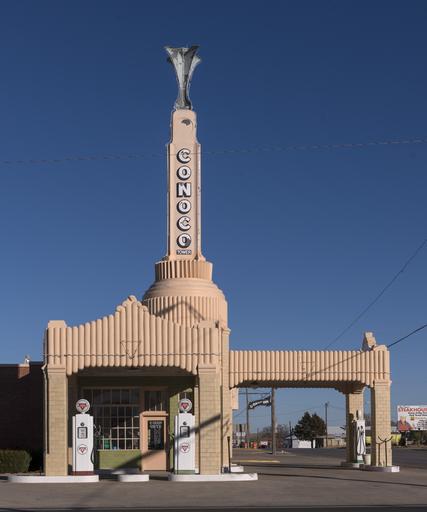 | Keywords: A carefully restored early Conoco gasoline station in the town of Shamrock, in the Texas panhandle LCCN2014633461.tif 1 photograph digital tiff file color Notes The building was constructed as three separate businesses 1 The Tower Conoco Station so named for the tall tower gracing its roof 2 The U-Drop Inn Cafe named by a local schoolboy in a contest that awarded him 50 00 for his idea 3 A retail store never used as such but soon taken over by the cafe folks for use as a ballroom and overflow dining room The building was a regional attraction in its day; neon lighting deco details and glazed ceramic tile walls It gradually took a beating the biggest hit coming in the 70s when it was painted red-white-and-blue and converted to a FINA station The building operated successfully for most of its life finally closing completely in the mid-1990s The building is now owned by the town and used as a visitor center ; Title date and keywords based on information provided by the photographer ; Gift; The Lyda Hill Foundation; 2014; DLC/PP-2014 054 ; Forms part of Lyda Hill Texas Collection of Photographs in Carol M Highsmith's America Project in the Carol M Highsmith Archive ; Credit line The Lyda Hill Texas Collection of Photographs in Carol M Highsmith's America Project Library of Congress Prints and Photographs Division 2013 Creator Carol M Highsmith Library of Congress Catalog http //lccn loc gov/2014633461 Image download https //cdn loc gov/master/pnp/highsm/29200/29261a tif Original url http //hdl loc gov/loc pnp/highsm 29261 No known restrictions on publication LOC-image highsm 29261 PD-Highsmith Images uploaded by Fæ Lyda Hill Texas Collection of Photographs in Carol M Highsmith's America Project in the Carol M Highsmith Archive The Lyda Hill Texas Collection of Photographs in Carol M Highsmith's America Project Library of Congress Prints and Photographs Division Photographs by Carol M Highsmith |