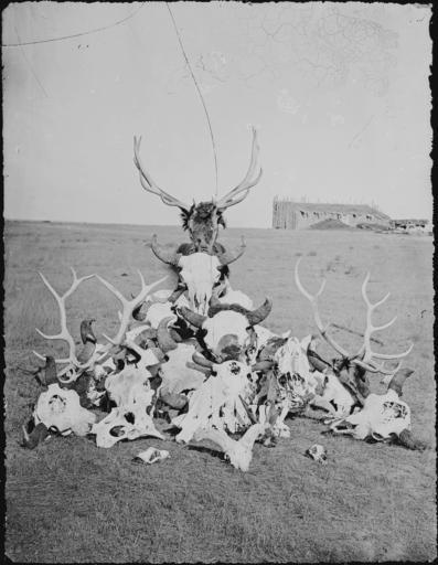 Keywords: A collection of buffalo, elk, deer, mountain sheep and wolf skulls and bones near Fort Sanders. Albany County, Wyoming. - NARA - 516956.jpg Scope and content General notes 516956 Local identifier 57-HS-348 Department of the Interior General Land Office U S Geological and Geographic Survey of the Territories 1874 - 06/30/1879 NARA-Author Jackson William Henry 1843-1942 Photographer 1116078 <br /> Still Picture Records Section Special Media Archives Services Division NWCS-S National Archives at College Park 8601 Adelphi Road College Park MD 20740-6001 1870 Record group Record Group 57 Records of the U S Geological Survey 1839 - 2008 Record group ARC 386 Hayden Survey William H Jackson Photographs compiled 1869 - 1878 Series ARC 516606 File unit File unit ARC Variant control numbers NAIL Control Number NWDNS-57-HS-348 Other versions <gallery> File A_collection_of_buffalo _elk _deer _mountain_sheep_and_wolf_skulls_and_bones_near_Fort_Sanders _Albany_County _Wyoming _-_NARA_-_516956 tif tif File A_collection_of_buffalo _elk _deer _mountain_sheep_and_wolf_skulls_and_bones_near_Fort_Sanders _Albany_County _Wyoming _-_NARA_-_516956 jpg jpg </gallery> NARA-cooperation PD-USGov Mammal skulls Bison skulls Cervus canadensis Antlers Fort Sanders Historic District 1870 in Wyoming Albany County Wyoming Animal bones |