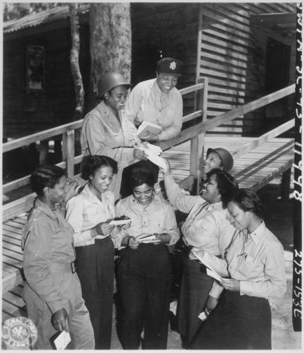 Keywords: nara:arcid=531410 national archives nationalarchives nurses pacific wwii world war ii worldwarii uniform mailcall mail african-american africanamerican women eight blackandwhite people monochrome black and white Original Caption: "A contingent of 15 nurses,...arrive in the southwest Pacific area, received their first batch of home mail at their station." 268th Station Hospital, Australia. Three of the nurses are Lts. Prudence L. Burns, Inez Holmes, and Birdie E. Brown, 11/29/1943 U.S. National Archives’ Local Identifier:111-SC-370740 From:Series: Signal Corps Photographs of American Military Activity, compiled 1754 - 1954 Created By:Department of Defense. Department of the Army. Office of the Chief Signal Officer. (09/18/1947 - 02/28/1964) Production Date:11/29/1943 Persistent URL: arcweb.archives.gov/arc/action/ExternalIdSearch?id=531410 Repository: NARA's Still Picture Records Section, National Archives at College Park (College Park, MD) Access Restrictions: Unrestricted Use Restrictions: Unrestricted Original Caption: "A contingent of 15 nurses,...arrive in the southwest Pacific area, received their first batch of home mail at their station." 268th Station Hospital, Australia. Three of the nurses are Lts. Prudence L. Burns, Inez Holmes, and Birdie E. Brown, 11/29/1943 U.S. National Archives’ Local Identifier:111-SC-370740 From:Series: Signal Corps Photographs of American Military Activity, compiled 1754 - 1954 Created By:Department of Defense. Department of the Army. Office of the Chief Signal Officer. (09/18/1947 - 02/28/1964) Production Date:11/29/1943 Persistent URL: arcweb.archives.gov/arc/action/ExternalIdSearch?id=531410 Repository: NARA's Still Picture Records Section, National Archives at College Park (College Park, MD) Access Restrictions: Unrestricted Use Restrictions: Unrestricted |
