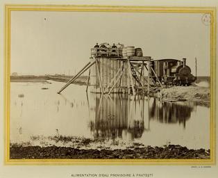 Keywords: A. D. Reiser - Alimentation d'eau provisoire à Frateşti.jpg <br> From the album La construction des chemins de fer militaires de l'armée russe - Bucharest-Zimnicea Alimentation d'eau provisoire à Frateşti Romanian Academy Library via Europeana eu 1877 1878 Creator Andreas Reiser PD PD-old-100 Andreas Reiser Romania in the 1870s Romanian War of Independence |