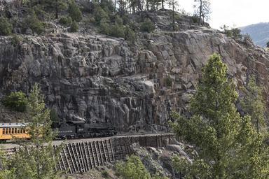 | Keywords: A Durango & Silverton Narrow Gauge Railroad (D&SNG) train proceeds along the rocky "Highline" ridge high above the Animas River Valley in La Plata County, Colorado LCCN2015632667.tif 1 photograph digital tiff file color Notes The D SNG is a narrow-gauge railroad that operates 45 2 miles of track between Durango and Silverton in southwest Colorado The route was originally opened in 1882 by the Denver Rio Grande Railway to transport silver and gold ore mined from the San Juan Mountains The line has run continuously since 1881 and some rolling stock dates to then It is now strictly a tourist and heritage line hauling passengers and is one of the few places in the United States that has seen continuous use of steam locomotives In March 1981 the Denver Rio Grande Western sold the line and the D SNG was formed Trains operate from Durango just 26 miles into the mountains in winter months and the full 45 miles to Silverton during warmer months ; Purchase; Carol M Highsmith Photography Inc ; 2015; DLC/PP-2015 068 ; Forms part of Gates Frontiers Fund Colorado Collection within the Carol M Highsmith Archive ; Credit line Gates Frontiers Fund Colorado Collection within the Carol M Highsmith Archive Library of Congress Prints and Photographs Division ; Title date and keywords based on information provided by the photographer 2015 Creator Carol M Highsmith Library of Congress Catalog http //lccn loc gov/2015632667 Image download https //cdn loc gov/master/pnp/highsm/32600/32652a tif Original url http //hdl loc gov/loc pnp/highsm 32652 No known restrictions on publication LOC-image highsm 32652 PD-Highsmith Images uploaded by Fæ Gates Frontiers Fund Colorado Collection within the Carol M Highsmith Archive Durango and Silverton Narrow Gauge Railroad trains Gates Frontiers Fund Colorado Collection within the Carol M Highsmith Archive Library of Congress Prints and Photographs Division Photographs by Carol M Highsmith |