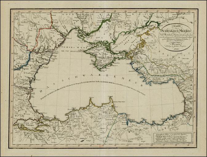 | Keywords: A.F. Gotze and Land Industrie Comptoirs. Charte des Schwarzen-Meeres Nach Murdochischer Projection.1800.jpg de Charte des Schwarzen-Meeres Nach Murdochischer Projection 1800 en Detailed map of the Black Sea and contiguous regions from the Allgemeiner Hand-Atlas der ganzen Erde published in Weimar from 1796 to 1804 <br /> The map incorporates Murdoch's projection as do many of the maps in the atlas Murdoch an English mathematician active in the mid 18th Century proposed three methods for rendering a conical projection on a map https //www raremaps com/gallery/detail/25981/Charte_des_SchwarzenMeeres_Nach_Murdochischer_Projection_1800/Gotze-Land 20Industrie 20Comptoirs html Barry Lawrence Ruderman Antique Maps Inc 1800 A F Gotze Götze Johann August Ferdinand / Land Industrie Comptoirs PD-Art-100 1800 maps Old maps of the Black Sea 19th-century maps of Georgia Ferdinand Götze |
