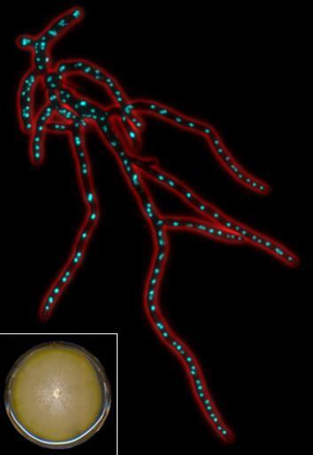 | Keywords: A gossypii.jpg Fluorescent micrograph of Ashbya gossypii mycelium with DAPI labeled nuclei Blue nuclei DNA red outline of the cell phase contrast inlay A gossypii grown on a full medium petri dish Yellowish color is the result of riboflavin production self-made Original uploaded on en wikipedia March 2007 Uploaded on Commons at 2011-02-12 16 53 00 UTC /Original uploaded at 2007-03-14 16 43 26 Spitfire ch Philippsen Lab Biozentrum Basel Transfered by Ayacop/Original uploaded by Spitfire ch GFDL self made Spitfire ch en Original upload log page en wikipedia A_gossypii jpg 2007-03-14 16 43 26 Spitfire ch 338×490 92 KB <nowiki> Summary Fluorescent micrograph of Ashbya gossypii mycelium with DAPI labeled nuclei Blue nuclei DNA red outline of the cell phase contrast inlay A gossypii grown on a full </nowiki> 2007-03-05 01 53 34 Spitfire ch 338×490 85 KB <nowiki> Summary Fluorescent micrograph of Ashbya gossypii mycelium with DAPI labeled nuclei Blue nuclei DNA red outline of the cell phase contrast inlay A gossypii grown on a full </nowiki> Unidentified Citrus z Diseases and disorders of plants due to fungi Fluorescence microscopy Eremothecium gossypii Genomics |