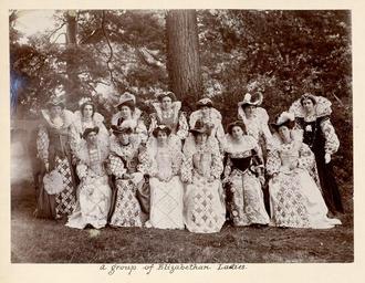 Keywords: cymru wales llyfrgell genedlaethol cymru llyfrgellgenedlaetholcymru national library of wales nationallibraryofwales abery, p. b. (1877?-1948) aberypb18771948 jones, wallace joneswallace historical pageants historicalpageants builth wells (wales) builthwellswales llanfair-ym-muallt llanfairymmuallt photographic prints photographicprints costumes impersonation dresses women group portraits groupportraits fans (accessories) fansaccessories clothing & dress clothingdress thirteen 1909 costume Ffotograffydd/Photographer: P. B. Abery (1877?-1948) &amp; Wallace Jones Dyddiad/Date: 11th August 1909 Cyfrwng/Medium: Photographic print Cyfeiriad/Reference: pba02001 Rhif cofnod / Record no.: 3590090 This image is taken from the Builth Wells Historical Pageant photograph album, which includes approximately 160 photographs, newspaper cuttings and other ephemera of the majestic pageant which was performed at the grounds of Llanelwedd Hall on 11 August 1909. The photographs were taken by P B Abery and Wallace Jones. The pageant was an epic production. According to a transcript included in the album, it took a year to prepare, over a 1000 people took part in the event, and it is reported to have been witnessed by a crowd of around 5000. Daw'r ffotograff yma o lyfr ffoto Pasiant Llanfair ym Muallt, sy'n cynnwys tua 160 o ffotograffau, toriadau’r wasg ac effemera sy’n ymwneud â’r pasiant mawreddog a berfformiwyd ar faes Neuadd Llanelwedd ar 11 Awst 1909. Tynnwyd y ffotograffau gan P B Abery a Wallace Jones. Roedd y pasiant yn ddigwyddiad ysblennydd. Yn ôl adysgrif sydd wedi ei chynnwys yn yr albwm, cymerodd flwyddyn i baratoi’r digwyddiad, bu 1000 o bobl yn rhan o’r paratoadau, ac adroddir fod tyrfa o tua 5000 yn ei wylio. Rhagor o wybodaeth am gasgliad P B Abery yn Llyfrgell Genedlaethol Cymru More information about the P B Abery Collection at the National Library of Wales Ffotograffydd/Photographer: P. B. Abery (1877?-1948) & Wallace Jones Dyddiad/Date: 11th August 1909 Cyfrwng/Medium: Photographic print Cyfeiriad/Reference: pba02001 Rhif cofnod / Record no.: 3590090 This image is taken from the Builth Wells Historical Pageant photograph album, which includes approximately 160 photographs, newspaper cuttings and other ephemera of the majestic pageant which was performed at the grounds of Llanelwedd Hall on 11 August 1909. The photographs were taken by P B Abery and Wallace Jones. The pageant was an epic production. According to a transcript included in the album, it took a year to prepare, over a 1000 people took part in the event, and it is reported to have been witnessed by a crowd of around 5000. Daw'r ffotograff yma o lyfr ffoto Pasiant Llanfair ym Muallt, sy'n cynnwys tua 160 o ffotograffau, toriadau’r wasg ac effemera sy’n ymwneud â’r pasiant mawreddog a berfformiwyd ar faes Neuadd Llanelwedd ar 11 Awst 1909. Tynnwyd y ffotograffau gan P B Abery a Wallace Jones. Roedd y pasiant yn ddigwyddiad ysblennydd. Yn ôl adysgrif sydd wedi ei chynnwys yn yr albwm, cymerodd flwyddyn i baratoi’r digwyddiad, bu 1000 o bobl yn rhan o’r paratoadau, ac adroddir fod tyrfa o tua 5000 yn ei wylio. Rhagor o wybodaeth am gasgliad P B Abery yn Llyfrgell Genedlaethol Cymru More information about the P B Abery Collection at the National Library of Wales <b>Ffotograffydd/Photographer:</b> P. B. Abery (1877?-1948) & Wallace Jones