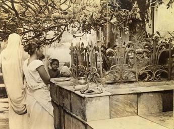 Keywords: A Hindu wife prays to the Siva for blessing of fertility in Calcutta in 1945.jpg Hindu wife prays to the God Siva for blessing of fertility Phallic symbol is obscured by iron grating at base of a type cactus tree which is believed to have power to endow worshipper with productive powers Woman whose face barely shows behind tree has prayed in vain for days and has been seen there day after day by Red Cross girls who take GI tours to the temple The South Asia Section of the Van Pelt Library University of Pennsylvania recently acquired from a bookdealer a photograph album consisting of 60 photographs of Calcutta taken most likely between 1945-1946 The photographer Mr Clyde Waddell also provided the interesting glosses accompanying each photograph Several attested copies of this work has emerged including one with a 'title page' held by the Southeastern Louisiana University in Hammond Louisiana Mr Waddell was a military photographer Many of his captions sound like annotations that would be found in a typical military magazine The album begins with several general long shots of Calcutta and ends with a picture of dhobi-s washermen washing clothes The text accompanying the last photograph also sounds as if the author intended to finish with that picture of one of the great mysteries of India The annotations have been included because of their intrinsic interest not only to the photographs but to a 'typical' American impression of India at this time 1945 http //www library upenn edu/collections/sasia/calcutta1947/ Clyde Waddell other versions PD-USGov Van Pelt Library University of Pennsylvania - Clyde Waddell Calcutta 1940's photos Uploaded with UploadWizard Hindu women from India |