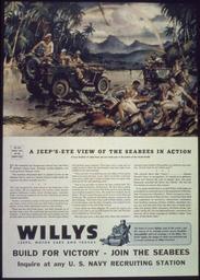 | Keywords: A jeep's-eye view of the seabees in action - NARA - 513727.jpg Scope and content General notes 513727 Local identifier 44-PA-278 Office for Emergency Management Office of War Information Domestic Operations Branch Bureau of Special Services 03/09/1943 - 09/15/1945 Still Picture Records Section Special Media Archives Services Division NWCS-S National Archives at College Park 8601 Adelphi Road College Park MD 20740-6001 1941 - 1945 Record group Record Group 44 Records of the Office of Government Reports 1932 - 1947 Record group ARC 373 World War II Posters compiled 1942 - 1945 Series ARC 513498 File unit File unit ARC Variant control numbers NAIL Control Number NWDNS-44-PA-278 Other versions <gallery> File A_jeep's-eye_view_of_the_seabees_in_action_-_NARA_-_513727 tif tif File A_jeep's-eye_view_of_the_seabees_in_action_-_NARA_-_513727 jpg jpg </gallery> NARA-cooperation PD-USGov World War II posters from the United States |