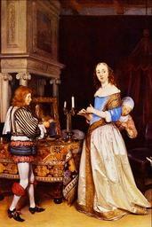 Keywords: A Lady at her Toilet - Gerard Terborch.png Artwork Creator Gerard ter Borch II ca 1660 Oil on canvas cm 76 2 59 7 Detroit Institute of Arts http //www dia org/mobile/art/object-info aspx objectToken 618760c1-fffa-4b4b-8aae-9cc1ec600832 3fposition 3 swmobile true Detroit Institute of Arts object history Collection Pieter van Winter Amsterdam<br>1797 Louvre Paris <br> 1802 Chateau Saint Cloud France <br>1833 Collection Willems Frankfurt am Main<br>1836 Collection Lionel de Rothschild<br>Collection Sir N M Rothschild London <br> ProvenanceEvent inheritance Collection Lord Alfred Rothschild London ProvenanceEvent inheritance Collection Mrs Clive Behrens daughter of Lord Rothschild Collection Major P E C Harris son-in-law of Mrs Behrens <br>-1965 Rosenberg Stiebel dealer New York <br> ProvenanceEvent purchase 1965 Rosenberg Stiebel dealer Detroit Institute of Arts credit line Founders Society Purchase Eleanor Clay Ford Fund General Membership Fund Endowment Income Fund and Special Activities Fund accession number 65 10 Corel Professional Photos CD-ROM PD-old-100 DEFAULTSORT Borch Gerard ter 2; Lady at her Toilet Genre paintings by Gerard ter Borch II Dutch paintings in the Detroit Institute of Arts Dutch 17th-century way of life in painting Mirrors in paintings Paintings of servants People in rooms in art Woman at her toilet Mistress and maid in art Paintings of dressing tables People with candles in art Toilet services in art 17th-century oil paintings of people 17th-century paintings of carpets 1660 oil on canvas paintings in the United States |