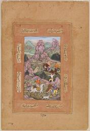 | Keywords: A Lion Hunt - Google Art Project.jpg ~ 1600 718182 Unknown /collection/freer-gallery-of-art-smithsonian/artwork/a-lion-hunt-unknown/6624573/ F1946 17 Unknown Artist /collection/freer-gallery-of-art-smithsonian/ Freer Gallery of Art Smithsonian 322006 http //www asia si edu/ 3/9/2012 7 28 40 PM /collection/freer-gallery-of-art-smithsonian/artwork/a-lion-hunt-unknown/6624573/ 1595 ca 1600 Mughal dynasty Opaque watercolor and gold on paper 186 6624573 True 1605 3/25/2012 5 24 03 AM F1946 17 Purchase Painting 1590 1610 Allahabad Uttar Pradesh India Origin w106 x h186 cm ca 1600 False 0 689453125 © Digital Image Smithsonian Institution Object a-lion-hunt-unknown A Lion Hunt a 106 Opaque watercolor and gold on paper Mughal dynasty special url_id DAGnuZF4TKB_qQ PD-old-100 Google Art Project works by unknown artist Islamic manuscripts in Freer Gallery of Art Hunting in art |