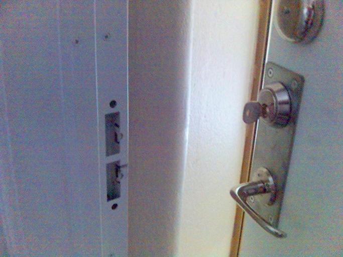 | Keywords: A Lock and a Strike.jpg en This is a strike plate that is included in the steel doorframe normally a strike is a metalplate attached to wood Also pictured is the lock that attaches to the strike sv Detta är ett slutbleck som är infogat i dörrens stålkarm normalt så är slutblecket en metallskiva som sätts fast i dörrkarmenens trä för att förstärka dörren Own Emj 2008-06-11 Door locks | ||||