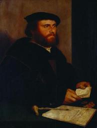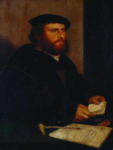 | Keywords: A merchant of the German steelyard by Hans Holbein the Younger.jpg Hans of Antwerp thumb 75px The painting is damaged by four large cracks and much repainting but according to art historian John Rowlands Holbein's fine work is evident in the features beard shirt and hands Hans or John of Antwerp was a goldsmith and friend of Holbein who was at his deathbed and carried out the terms of his will <ref>Derek Wilson Hans Holbein Portrait of an Unknown Man London Pimlico Revised Edition 2006 ISBN 9781844139187 p 278 </ref> He has been identified as the possible sitter from the damaged inscription which also mentions the Hanseatic merchants' Steelyard where he may have worked as a goldsmith or a merchant or both <ref>John Rowlands Holbein The Paintings of Hans Holbein the Younger Boston David R Godine 1985 ISBN 0879235780 pp 136 “37 </ref> The scholarship on the sitter's identity is not however conclusive The same man is depicted in a roundel after Holbein right <br>References <references/> oil tempera oak 61 × 46 8 cm Royal Collection Windsor Castle http //www royalcollection org uk/eGallery/maker asp maker 12102 Royal Collection Creator Hans Holbein d J 1532 “33 Paintings in the Royal Collection of the United Kingdom by Hans Holbein der Jüngere 1530s paintings from Germany Portraits of Steelyard merchants Tempera on panel 1530s portrait paintings Portrait paintings of bearded men Men facing right in art 1530s paintings in the United Kingdom Male portraits by Hans Holbein der Jüngere steelyard merchant PD-old-100 |