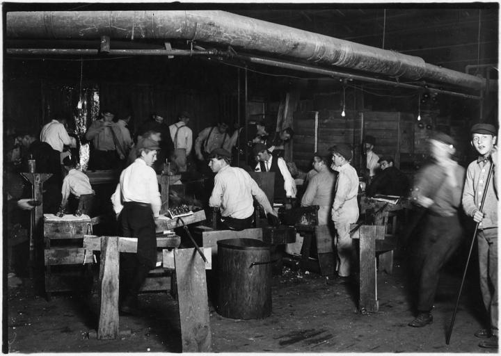 Keywords: nara:arcid=523234 u.s. national archives usnationalarchives lewis hine lewishine child labor childlabor working conditions workingconditions factory national child labor committee nationalchildlaborcommittee 1909 blackandwhite monochrome black and white Original Caption: A midnight scene in More-Jonas Works. See small snapper up boy in left of photo. Bridgeton, N.J., November 1909 U.S. National Archives’ Local Identifier: 102-LH-982 Photographer: Hine, Lewis Subjects: Child Labor National Child Labor Committee Working Conditions Factory Persistent URL: research.archives.gov/description/523234 Repository: Still Picture Records Section, Special Media Archives Services Division (NWCS-S), National Archives at College Park, 8601 Adelphi Road, College Park, MD, 20740-6001. For information about ordering reproductions of photographs held by the Still Picture Unit, visit: www.archives.gov/research/order/still-pictures.html Reproductions may be ordered via an independent vendor. NARA maintains a list of vendors at www.archives.gov/research/order/vendors-photos-maps-dc.html Access Restrictions: Unrestricted Use Restrictions: Unrestricted Original Caption: A midnight scene in More-Jonas Works. See small snapper up boy in left of photo. Bridgeton, N.J., November 1909 U.S. National Archives’ Local Identifier: 102-LH-982 Photographer: Hine, Lewis Subjects: Child Labor National Child Labor Committee Working Conditions Factory Persistent URL: research.archives.gov/description/523234 Repository: Still Picture Records Section, Special Media Archives Services Division (NWCS-S), National Archives at College Park, 8601 Adelphi Road, College Park, MD, 20740-6001. For information about ordering reproductions of photographs held by the Still Picture Unit, visit: www.archives.gov/research/order/still-pictures.html Reproductions may be ordered via an independent vendor. NARA maintains a list of vendors at www.archives.gov/research/order/vendors-photos-maps-dc.html Access Restrictions: Unrestricted Use Restrictions: Unrestricted |