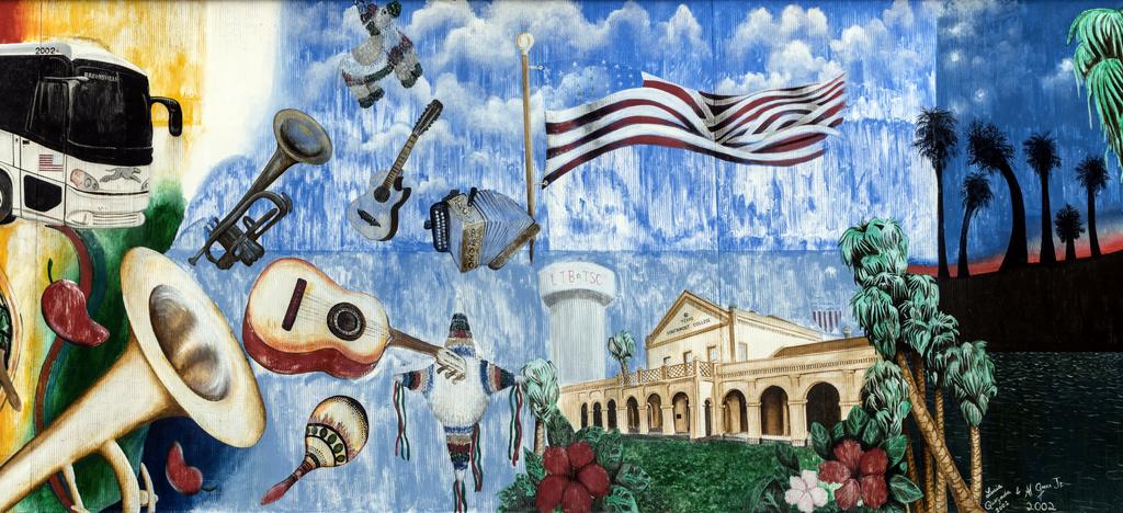 | Keywords: A portion of a colorful street mural in downtown Brownsville, Texas LCCN2014630472.tif 1 photograph digital tiff file color Notes Title date and keywords based on information provided by the photographer ; Credit line The Lyda Hill Texas Collection of Photographs in Carol M Highsmith's America Project Library of Congress Prints and Photographs Division ; Forms part of Lyda Hill Texas Collection of Photographs in Carol M Highsmith's America Project in the Carol M Highsmith Archive ; Gift; The Lyda Hill Foundation; 2014; DLC/PP-2014 054 ; Artist Lucia Quezada and Al Garza Jr 2002 2014 Creator Carol M Highsmith Library of Congress Catalog http //lccn loc gov/2014630472 Image download https //cdn loc gov/master/pnp/highsm/26200/26272a tif Original url http //hdl loc gov/loc pnp/highsm 26272 No known restrictions on publication LOC-image highsm 26272 25 54 0034 0 N 97 29 9857 0 W alt 3_source exif_heading 252 9 PD-Highsmith Images uploaded by Fæ The Lyda Hill Texas Collection of Photographs in Carol M Highsmith's America Project Library of Congress Prints and Photographs Division Lyda Hill Texas Collection of Photographs in Carol M Highsmith's America Project in the Carol M Highsmith Archive Photographs by Carol M Highsmith needing review Murals in Texas |