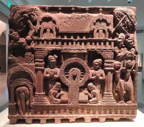 Keywords: A Royal Couple Visits the Buddha, from railing of the Bharhut Stupa, Shunga dynasty, early 2nd century BC, Bharhut, Madhya Pradesh, India, sandstone - Freer Gallery of Art - DSC05134.JPG en Exhibit in the Freer Gallery of Art Washington DC USA This artwork is old enough so that it is in the public domain Photography was permitted in the museum without restriction 2013-02-12 14 23 21 own Daderot cc-zero Uploaded with UploadWizard Sculpture of India in the Freer Gallery of Art |