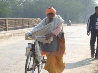Keywords: A Sadhu.jpg A Sadhu at Makhdumpur bridge near Hastinapur Domnique's Camera 2008-02 sanjeev Kohli not required blurry Hastinapur Sadhus of India People with bicycles Cycling in India