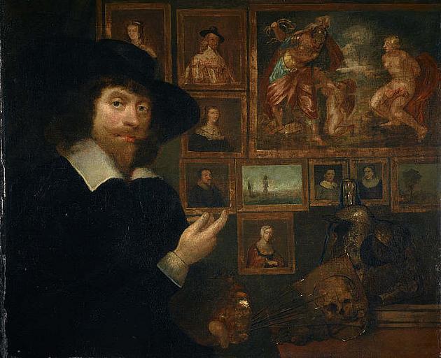 Keywords: A self-portrait by George Jamesone.jpeg a 1642 Oil on canvas 72 00 x 87 40 cm framed 93 98 x 109 22 x 13 97 cm Institution National Gallery of Scotland object history credit line Purchased 1976 accession number PG 2361 http //www nationalgalleries org/collection/simple-search/J/5402/artist_name/George 20Jamesone/record_id/2742 other versions <gallery>GeorgeJamesone jpg</gallery> PD-old-100 George Jamesone Portrait paintings in the National Gallery of Scotland 17th-century self-portrait paintings of men 1642 1642 portrait paintings Male 17th-century men looking at viewer in art 17th-century oil portraits of men at half length 1642 Black clothing in art male 1642 Portrait paintings of men wearing black hats 1642 Portraits with paintings 1642 Self-portrait paintings holding palette and brushes 1642 |