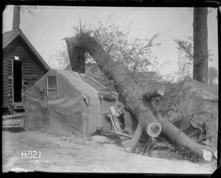 Keywords: blackandwhite monochrome photo border outdoor black and white A tall tree shelled by German artillery collapsed onto a New Zealand army hut near the Western Front during World War I. Athough much of the hut was destroyed no lives were lost. Photograph taken probably France 12 August 1917 by Henry Armytage Sanders. Inscriptions: Inscribed - Photographer's title on negative -bottom left: H821. Quantity: 1 b&w original negative(s). Physical Description: Dry plate glass negative 4 x 5 inches A shelled tree collapsed on the soldiers' hut, World War I. Royal New Zealand Returned and Services' Association :New Zealand official negatives, World War 1914-1918. Ref: 1/2-013405-G. Alexander Turnbull Library, Wellington, New Zealand. natlib.govt.nz/records/23007978 A tall tree shelled by German artillery collapsed onto a New Zealand army hut near the Western Front during World War I. Athough much of the hut was destroyed no lives were lost. Photograph taken probably France 12 August 1917 by Henry Armytage Sanders. Inscriptions: Inscribed - Photographer's title on negative -bottom left: H821. Quantity: 1 b&w original negative(s). Physical Description: Dry plate glass negative 4 x 5 inches A shelled tree collapsed on the soldiers' hut, World War I. Royal New Zealand Returned and Services' Association :New Zealand official negatives, World War 1914-1918. Ref: 1/2-013405-G. Alexander Turnbull Library, Wellington, New Zealand. natlib.govt.nz/records/23007978 |