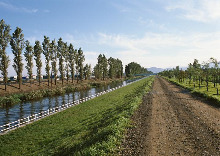 Keywords: road outdoor tree cold snowy narrow nobody natural park perspective green river autumn dike view day scenery grass outside light fence picturesque countryside season autumnal winter fall colorful blue