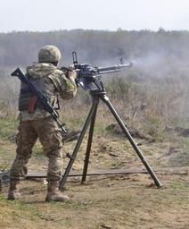 | Keywords: A soldier with the Ukrainian Land Forces fires a Degtyaryov-Shpagin Large-Caliber heavy machine gun.jpg en A soldier with the Ukrainian Land Forces fires a Degtyaryov-Shpagin Large-Caliber heavy machine gun Apr 7 2016 at the International Peacekeeping and Security Center near Yavoriv Ukraine during a live-fire exercise lead by soldiers with the Lithuanian Land Forces as part as Joint Multinational Training Group-Ukraine Each JMTG-U rotation will consist of nine weeks of training where Ukrainian soldiers will learn defensive combat skills needed to increase Ukraine's capacity for self-defense U S Army photo by Staff Sgt Adriana M Diaz-Brown 10th Press Camp Headquarters 2016-04-07 https //www dvidshub net/image/2512676/heavy-machine-gun Staff Sgt Adriana M Diaz-Brown other versions cc-zero 25th Airborne Brigade Ukraine Soldiers of Ukraine DShKM Joint Multinational Training Group-Ukraine Ð Ð -14 camouflage pattern of the Ukrainian military |