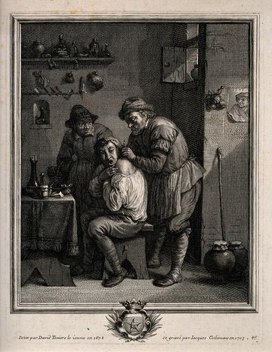 | Keywords: A surgeon lancing a grimacing man's shoulder. Engraving by J Wellcome V0016731.jpg Artwork Creator Jacobus Coelemans A surgeon lancing a grimacing man's shoulder Engraving by J Coelemans 1703 after D Teniers the younger 1678 <p>Iconographic Collections<br> Keywords David Teniers; SURGERY; barber surgeon; Jacobus Coelemans Library reference ICV No 16863 Photo number V0016731 Full Bibliographic Record http //catalogue wellcomelibrary org/record b1180359 object history exhibition history credit line Wellcome Images http //wellcomeimages org/indexplus/obf_images/e7/b9/7e58fa813241c42a4c076b1f5dee jpg Gallery http //wellcomeimages org/indexplus/image/V0016731 html accession number PD-old-auto-1923 1735 Images uploaded by Fæ Wellcome V0016731 jpg Files from Wellcome Images check needed V0016731 jpg Works after David Teniers the Younger barber surgeon Jacobus Coelemans Surgery in the Wellcome Collection |