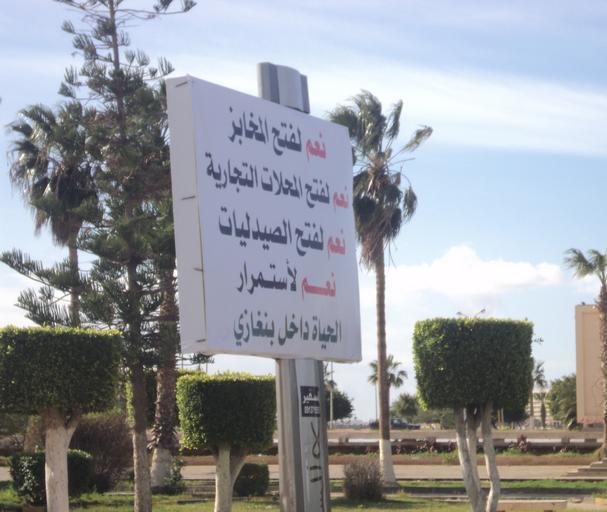 Keywords: A tablet in Benghazi.JPG en A tablet in Benghazi It reads Yes for opening bakerys yes for opening shops yes for opening pharmacies yes for continuance of life in Beghaazi ar لافتة في مدينة بنغازي own Maher27777 2011-02-23 Demonstrations and protests against the Government of Libya in the Libyan civil war held in Benghazi |