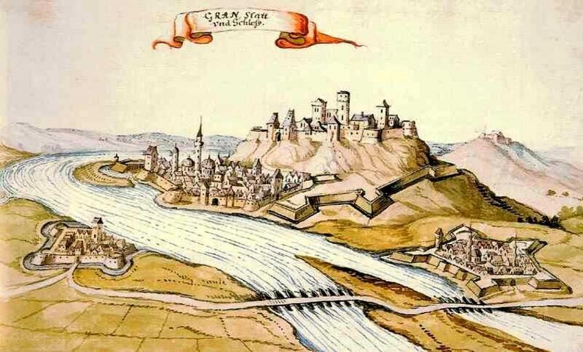 | Keywords: A török kori Esztergom látképe. Vízfestmény, 1664.jpg A painting of Esztergom Watertown Saintthomas and Kakath now Párkány 1664 PD-old Old pictures of Štúrovo Old pictures of Esztergom Castle Hill Historical images of Danube 1664 in Hungary Paintings of bridges Paintings of the Danube |