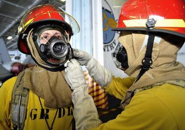 Keywords: A U.S. Sailor helps adjust the MCU-2-P gas mask worn by Aviation Boatswain's Mate Handling 3rd Class Paul Seat, left, during a general quarters drill aboard the aircraft carrier USS Harry S. Truman (CVN 75) 090918-N-RF645-001.jpg en A U S Sailor helps adjust the MCU-2/P gas mask worn by Aviation Boatswain's Mate Handling 3rd Class Paul Seat left during a general quarters drill aboard the aircraft carrier USS Harry S Truman CVN 75 under way in the Atlantic Ocean Sept 18 2009 Truman is participating in a joint task force exercise while at sea 2009-09-18 MC3 Kilho Park http //www defenseimagery mil/imageRetrieve action guid 6f586886fb09c50fd2c34290dcb593e4615342fe t 2 Public domain photograph from defenseimagery mil http //www defenseimagery mil/imagery html guid 6f586886fb09c50fd2c34290dcb593e4615342fe 090918-N-RF645-001 2011-02-15 USS Harry S Truman CVN 75 PD-USGov-Military-Navy USS Harry S Truman CVN-75 Gas masks of the United States Images from DoD uploaded by Fæ Self-contained breathing apparatus |