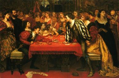 Keywords: A Venetian Gaming-House in the Sixteenth Century by Valentine Cameron Prinsep.jpeg en A Venetian Gaming-House in the Sixteenth Century oil canvas cm 122 184 2 Private collection 28584 creator Valentine Cameron Prinsep date PD-old-100-1923 19th-century oil on canvas paintings Valentine Cameron Prinsep Card games in art |