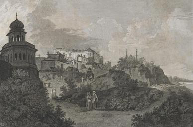 | Keywords: A view of the Palace of the Nabob Asoph ul Dowlah at Lucknow.jpg en Engraving of a view of the Palace of the Nawab Asaf ud Daula at Lucknow by James Fittler 1758-1835 after William Hodges 1744-1797 Plate 11 of William Hodges 'Travels in India during the years 1780 1781 1782 1783' published in London in 1793 The palace of Nawab Asaf ud Daula seen in this view no longer stands According to Hodges it was built partly Shuja ud Daula and greatly extended his son Nawab Asaf ud Daula The palace was situated on the banks of the river Gumty It had large courts within the walls and a durbar or assembly room On a high bank shown on the right side of this view there was a mosque with two minarets 1793 http //www bl uk/onlinegallery/onlineex/apac/other/019wzz000002126u00011000 html Fittler James 1758-1835 PD-old-100 Uploaded with UploadWizard Awadh 1793 in India Historical images of Lucknow James Fittler |