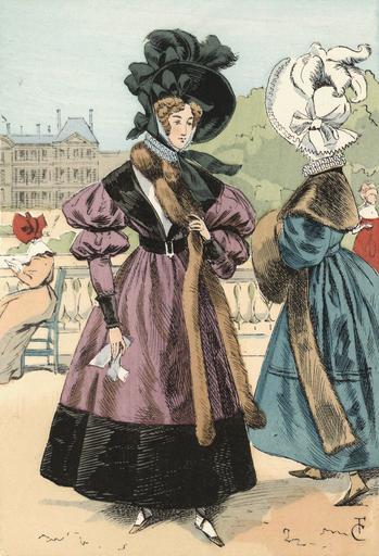 Keywords: A Winter stroll in the Luxembourg gardens, 1830.jpg Artwork The woman in this skirt falls slightly above the ankle Her shoes are 'cothurnes' or very thin shoes with leather ribbons laced around the ankles She has very wide sleeves cut from circular patterns en 'béret ' Her waist appears very small as the corset became very popular around this time Also her hat is enormous and decorated elaborately with feathers and ribbons Abstract sources Ruppert Jacques Le Costume Français Paris Flammarion 1996 Boucher François 20 000 Years of Fashion New York Harry N Abrams Inc 1967 1898 colored plate 10 x 15 cm Institution Brown University Library object history exhibition history credit line Published in Octave Uzanne Fashion in Paris the various phases of feminine taste and aesthetics from 1797 to 1897 London William Heinemann 1898 accession number 1150467072670283 PD-old Les modes de Paris 040 Images of Paris from the Brown University Library 1830 in Paris Fashion in 1830 Historical images of the Jardin du Luxembourg Females with purple dresses in art White hats Females with black headwear in art Fur boas in art Fur scarves in art Muffs in art 1830s dresses Fur fashion in 1830 Females with white headgear in art |