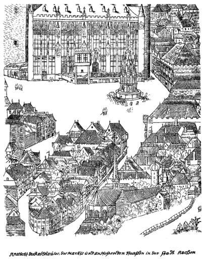Keywords: Aachen-Einzelbilder-1566-Blatt-7.png en View of the town hall the market place and the adjacent streets of the city of Aachen de Ansicht des Rathauses des Marktplatzes und der anstoßenden Straßen der Stadt Aachen en One of the four remaining engravings of probably originally twelve partial sheets of a city view de Einer der vier erhaltenen Kupferstiche von ursprünglich vermutlich zwölf Teilblättern einer Stadtansicht http //stadtgeschichte isl rwth-aachen de/wiki/Datei Einzelbilder-1566-Batt-7 jpg anonymus 1566 copyright expired PD-old-100 Historical views of Aachen |
