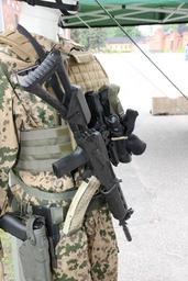 | Keywords: Aavikkomaastopuku 7,62 RK 95 TP Lippujuhlan päivä 2014 3.JPG en Mannequin in Finnish army desert camouflage with 7 62 RK 95 TP assault rifle with ACOG sight and Glock 17 pistol on display during Finnish Defence Forces 2014 Flag day in Lappeenranta Rakuunanmäki fi Mallinukke aavikkomaastopuvussa aseena 7 62 RK 95 TP rynnäkkökivääri ACOG-tähtäimellä sekä Glock 17 pistooli kalustoesittelyssä Lappeenrannan Rakuunanmäellä lippujuhlan päivänä 2014 own MKFI 2014-06-04 Flag Day of the Finnish Defence Forces 2014 Sako M95 Advanced Combat Optical Gunsight Glock 17 Mannequins Military uniforms of Finland Taken with Canon EOS 60D Taken with Canon EF-S 15-85mm F3 5-5 6 IS USM Files by User MKFI |