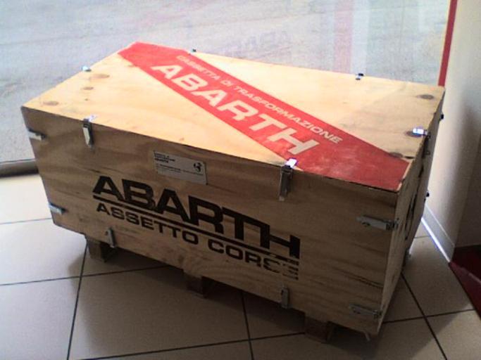 | Keywords: Abarthcassettakit.jpg en kit assetto corse Abarth it Cassa di trasformazione contenente tutto il kit per portare allo step assetto corse le vetture Abarth questa riguarda il modello Abarth Grande Punto Questa cassetta in legno che rievoca le storiche cassette di elaborazione Abarth di una volta own Pava Abarth Wooden boxes |
